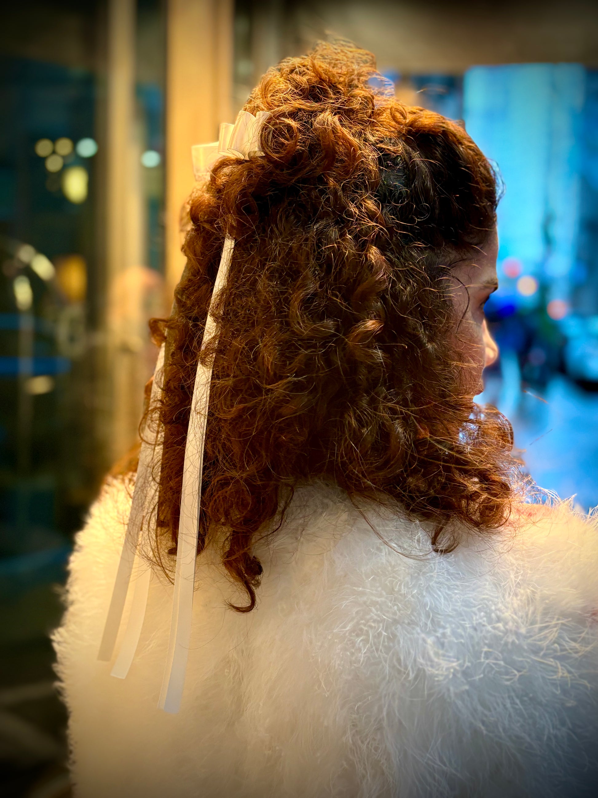 If you would like to try on this hair bow at our Williamsburg, Brooklyn showroom, we offer complimentary appointments.